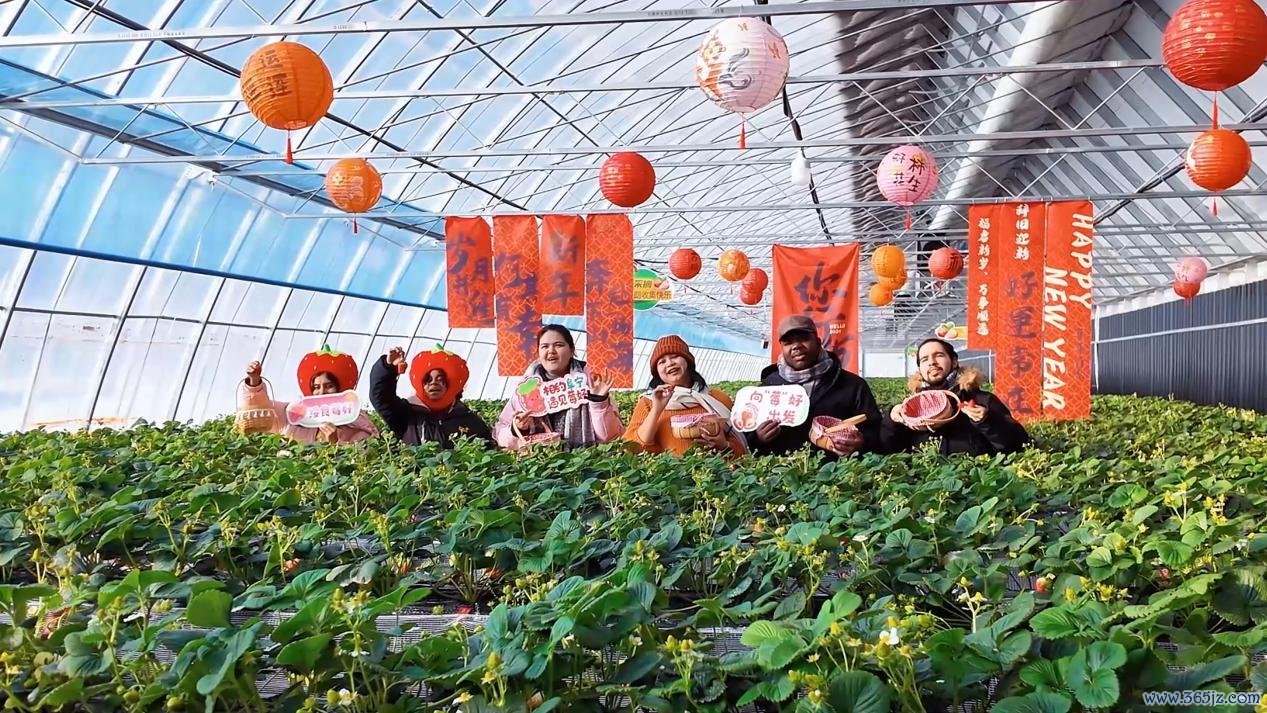 留学生们来到了南寒村桃花岛草莓采摘园,当代化6H温室大棚内。内行回味着簇新的草莓,感触“绥食莓好”草莓的厚味。