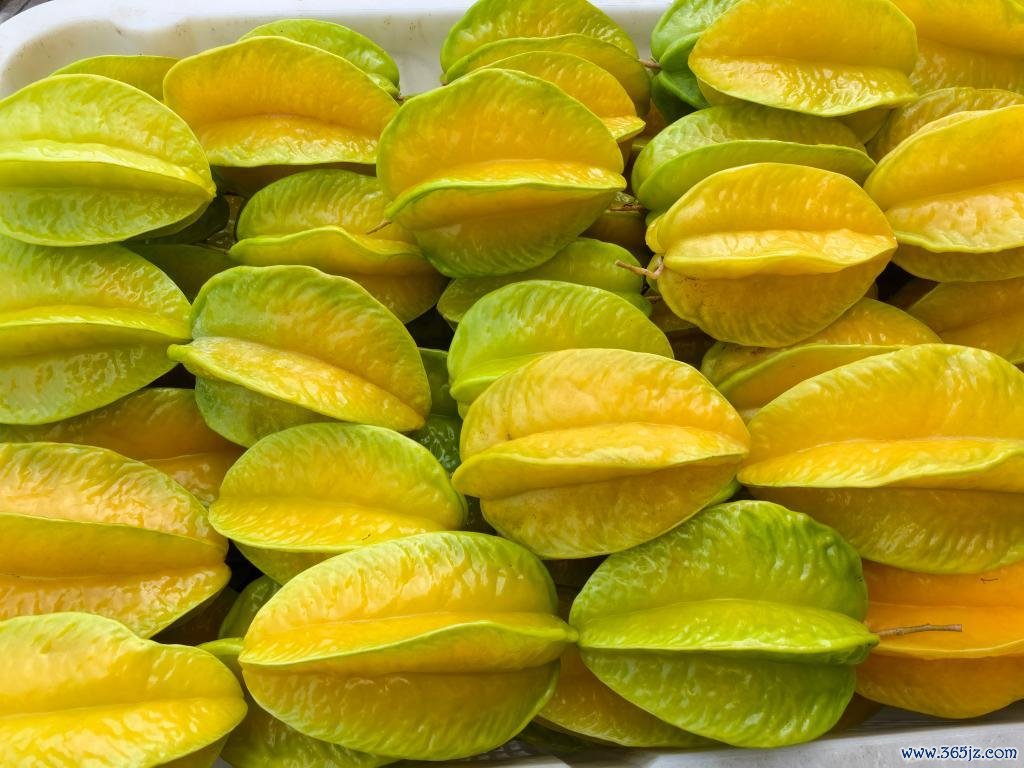 元江县生果阛阓成堆摆放的杨桃。(元江县融媒体中心供图)