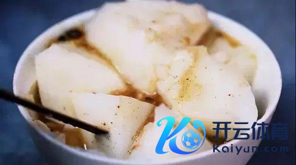 宾阳盐糕是将浆水倒进浅口碗中入锅蒸熟,出锅后凝固成凹下状。用刀划切成块,拌上调料即可食用。揭锅时伴着浓浓的米香,白皙透亮,冷热两食。在盐糕的基础上,东说念主们加以篡改,又制出了芋头糕和七色糕,不仅外不雅漂亮,口味也更加丰富。