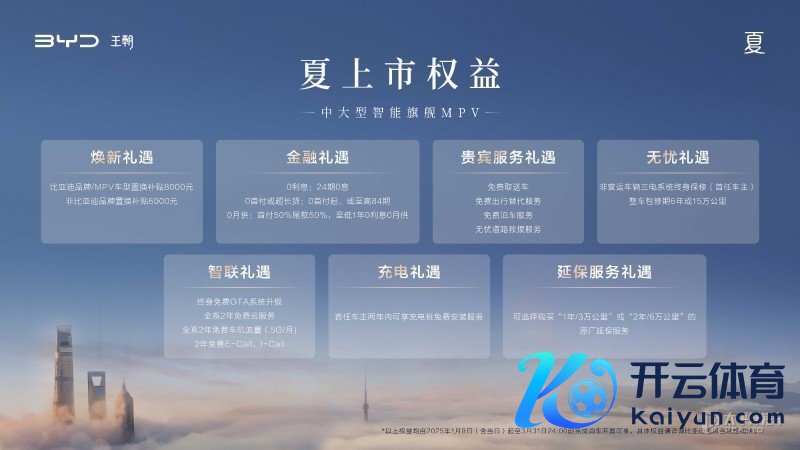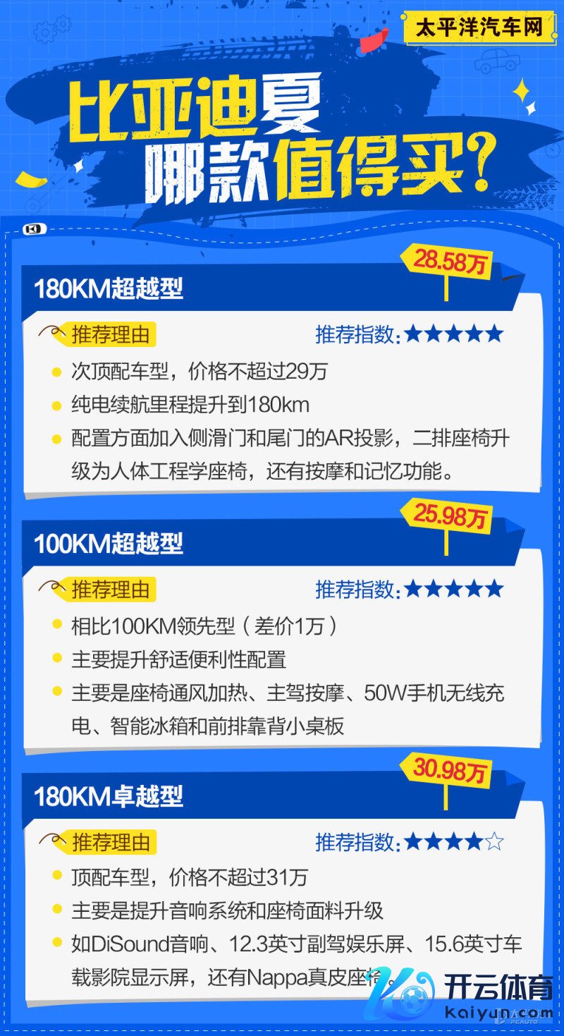 【太平洋汽车 导购频说念】刚步入2025年不久,比亚迪王朝网这边就扔出一个“王炸”车型,此次是全新IP的首款车型,如故首款搭载第五代DM时刻的中大型MPV,比亚迪夏(询底价|查参配)。比亚迪夏在1月18日上市,新车共有4款建立,分为CLTC工况续航100km/180km,2种纯电续航版块开云官方,并提供4种外不雅面貌及2种内饰配色可选,售价为24.98—30.98万元,这个价钱不错说足以对结伙敌手酿成致命一击。