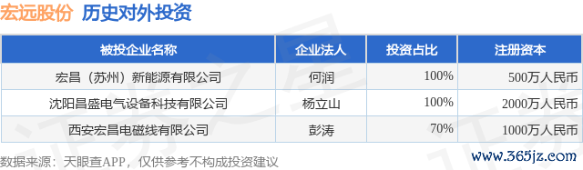 本站音书,凭证天眼查APP走漏,宏远股份(920018.BJ)新增一齐对外投资事件,被投资公司为宏昌(苏州)新动力有限公司,法定代表东谈主何润,投资占比为100%。该公司从事科技施行和讹诈办作事,注册成本为500万东谈主民币。现在,宏远股份共存在对外投资3项,详见下表: