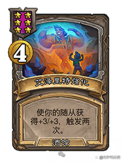 篡改后:10/10。战吼,一火语:在本局对战中,酒馆中的奴婢领有+4/+4。